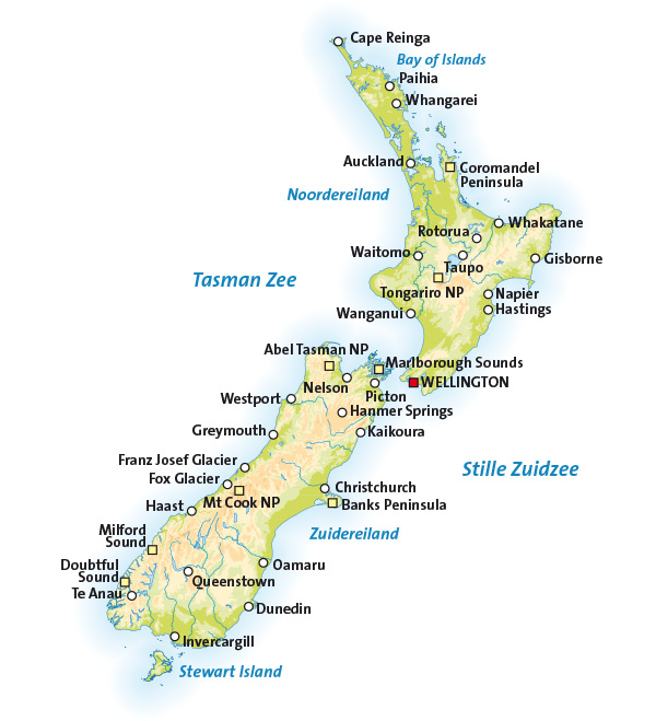 Tussen het Noorder- en Zuidereiland (Wellington-Picton) varen de Interislander en de Bluebridge ferries. Een aantal malen per dag maken de veerboten de 3,5 uur durende oversteek. Vanuit de haven van Wellington vaart u door de Cook Strait en komt bij de prachtige Marlborough Sounds. Een uur lang vaart u door dit schilderachtige gebied met waterwegen en groene heuvels alvorens u in het pittoreske havenstadje Picton arriveert. Uiteraard kunt u ook vanuit Picton naar Wellington varen. Bij alle auto- en camper verhuurmaatschappijen die wij aanbieden, dient u de auto/camper op de ferry mee te nemen.