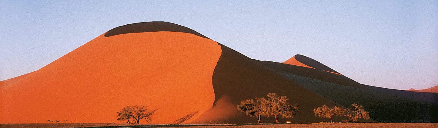Na uw verblijf in Windhoek begint uw reis met een bezoek aan het enorme Namib Naukluft Park. Hier ligt Sossusvlei, waar de hoogste zandduinen ter wereld te vinden zijn. Vroeg in de ochtend ziet u door de opkomende zon de duinen van kleur veranderen; uiteraard kunt u ook een van de duinen beklimmen. Het mooie uitzicht is de pittige klim zeker waard! De kalkvlaktes van Deadvlei worden omringd door rode zandduinen, een bijzonder fotogeniek plaatje. Ook bezoekt u Sesriem Canyon, een ravijn van 30 meter diep. Na een dag de woestijn te hebben verkend, bent u vast toe aan een verfrissende duik in het zwembad bij uw lodge!