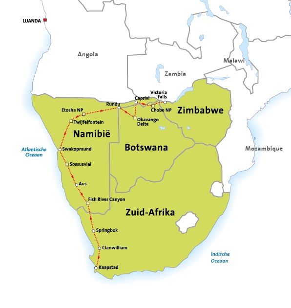 Onderstaande routekaartjes helpen u op weg om de rondreis door Namibië te kiezen die het beste past bij uw wensen. Onder elk kaartje kunt u een link aanklikken naar uitgebreide informatie over de rondreis, inclusief het dag tot dag programma en de prijzen.