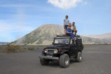 Andere leuke optionele excursies zijn een jeepsafari naar de Merapi vulkaan of tuben (drijven op een autoband) door een grot. Je kunt de dag afsluiten met een paar uurtjes bij het zwembad. (O) Dag 6Yogyakarta - Mojokerto (per trein) - Batu (totaal ca. 8 uur)Met de trein reizen heeft altijd iets magisch en vandaag doorkruisen jullie per trein het Javaanse platteland. De stoelen zijn comfortabel en jullie zitten tussen lokale reizigers. Super, vertrekken maar! De komende vier uur snellen rijstvelden en groene heuvels aan je voorbij en geregeld passeer je kleine dorpen. De auto brengt jullie vervolgens in ongeveer twee uur van Mojokerto naar Batu. Het hotel ligt midden tussen de heuvels en uitlopers van omringende vulkanen. Hier verblijven jullie twee nachten. Het is er rustig, er is een zwembad en een aardbeienboerderij. De kids kunnen gelijk een plons in het zwembad nemen. Even ontspannen en opmaken voor de expeditie van morgen. (O) Dag 7Batu: expeditie naar de Bromo vulkaanNa het ontbijt vertrekken jullie voor een expeditie naar de iconische Bromo vulkaan. Expeditie klinkt heel spannend en de jeep waarmee jullie op pad gaan maakt de reis extra avontuurlijk. Jullie stijgen langzaam in hoogte en slingeren over asfaltwegen door groene bossen. Boven aangekomen duik je over zandwegen de krater in, dit is de grote ring rond de Bromo vulkaan. Stofwolken achtervolgen jullie, want de Bromo ligt samen met twee andere vulkanen in een enorme zee van zand. Het is net een maanlandschap. En daar zie je dan Mount Bromo. Jullie nemen de trappen omhoog, zodat je echt op de rand staat en de vulkaan in kunt kijken. Wat een natuurgeweld! Met een jeep rijd je vervolgens door naar de buitenste kraterrand voor het beroemde uitzicht. Het is weliswaar geen zonsopkomst, maar het is er nu wel een stuk rustiger. Vanavond overnachten jullie weer in hetzelfde hotel, wel zo relaxed na zo'n enerverende dag. (O)