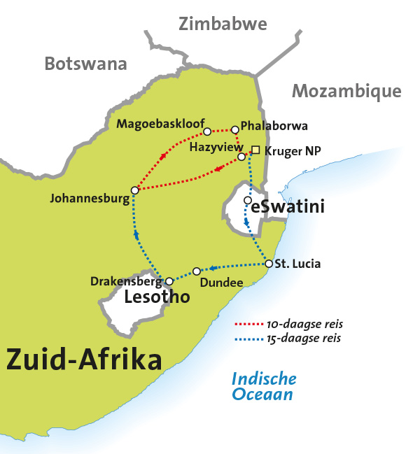 Wilt u langer op reis of combineren met het tropische eiland Mauritius? Leest u dan de beschrijving van de 15-daagse Bush Discovery inclusief eSwatini & Zululand, of de 15-daagse Bush Discovery & Mauritius rondreis.