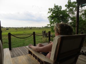 Het verblijf hier is volledig inclusief dus je wordt op en top verwend! Helaas blijken de dieren zojuist vertrokken omdat het droge seizoen ten einde is. Na een prachtige zonsondergang, heerlijke hapjes en vele gin tonics komen we oog in oog te staan met een grote mannetjesolifant die onze weg naar de lodge blokkeert. De olifant maakt geen aanstalten om opzij te gaan, waardoor onze guide de safaritruck flink lawaai laat maken. De olifant doet vervolgens hetzelfde en doet nog enkele passen onze kant op. Gelukkig heeft onze guide veel lef en geeft hij nog wat gas waardoor de olifant toch uiteindelijk besluit om ons doorgang te geven.