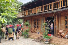 De moeder van de eigenares van de homestay komt langs met een aantal (buur)vrouwen. Ze zijn gekleed in de prachtige traditionele kleding van de Red Dao bevolkingsgroep en strijken met hun handwerkjes neer op het terras. Vanwege de taalbarrière kunnen we niet goed met elkaar praten, maar met handen en voeten komen we een heel eind. Ze laten ons hun naai- en borduurwerk zien. Natuurlijk doen ze dat in de hoop dat wij iets zullen kopen, maar ze zijn niet opdringerig en lijken die bezoekers uit Europa net zo interessant te vinden als wij hen. Als we later een wandeling door de omgeving maken, lopen drie vrolijke vrouwen met ons mee en hebben we onderweg veel plezier met elkaar. Ze vinden het prima dat wij foto's maken en bekijken zichzelf graag op onze mobiele telefoons. Die hebben ze zelf trouwens ook, want ondanks hun traditionele kleding gaan ze wel met hun tijd mee. Aan het einde van de wandeling kopen wij van elk van deze vrouwen een mooi souvenir, om ze van wat inkomsten te voorzien. 's Avonds staat er heerlijk eten voor ons klaar in de ruime huiskamer. Terwijl wij daarvan genieten, zit het gastgezin aan een andere tafel te eten terwijl ze op een enorme televisie naar een tekenfilm kijken. Wandelen in SapaBij Sapa maken we samen met een lokale gids een pittige bergwandeling. We lopen langs dorpjes, rijstvelden en landbouwgronden en maken halverwege een stop in een berghut voor een uitgebreide lunch. We moeten flink klimmen en het is een zonnige dag, dus het is een behoorlijke inspanning. Met een gebruind gezicht en vermoeide benen komen we die namiddag aan in ons luxe hotel in Sapa, waar we een balkon met een mooi uitzicht over de vallei hebben. Sapa is een grote, drukke stad en de overgang van Ta Pinh is groot. We genieten wel extra van de warme douche en de dikke witte badjassen; een groot verschil met de Spartaanse douche en de lekkende gootsteen in de homestay. Toch had ik er graag nog een dag douchen onder een klein straaltje warm water voor over gehad om meer in contact te kunnen zijn met de cultuur van de Red Dao, Hmong en de andere bergvolkeren die hier leven. Boottocht door Lan Ha BayVia een tussenstop in Hanoi reizen we met een shuttlebus naar de haven van Hanoi, waar we door een tenderbootje naar de Mon Cheri 1 worden gebracht. Op dit luxe schip verblijven wij twee nachten tijdens een cruise door Lan Ha Bay. Wij kozen bewust voor een arrangement van drie dagen (twee nachten), in de veronderstelling dat we met dit schip in een rustiger gebied zouden varen. Dat is misschien zo, maar ook in Lan Ha Bay liggen veel schepen. Reizigers die een dergelijk arrangement boeken, moeten hier rekening mee houden. Wij leggen ons erbij neer. De baai is nog steeds mooi, het schip is super comfortabel en de bemanning krijgt een dikke 10 voor service. De zonsondergangen zijn prachtig en het eten aan boord is fantastisch. Beide avonden rollen we zeer voldaan ons bed in en 's ochtends sta ik vroeg op voor de tai chi lessen op het bovendek, terwijl een waterlandschap met eilanden van kalksteen aan mij voorbijtrekt. Cat BaTijdens de cruise maken we een dagtocht naar Cat Ba eiland, dat we op de fiets verkennen. Minder sportieve reizigers worden vervoerd met een XL-golfkar. Cat Ba is een mooi en groen eiland met hoge rotspartijen. In dit dramatische decor zijn scėnes van de film King Kong opgenomen. Op Cat Ba bevindt zich ook de grote Trung Tra druipsteengrot, die driehonderd meter lang is en waar veel indrukwekkende stalactieten en stalagmieten te zien zijn. Een bezoek aan deze grot staat op de laatste dag van de cruise gepland, waarna je voor de lunch terugkeert naar het schip en daarna van boord gaat. Pu LongOp ongeveer vierenhalf uur rijden van Hanoi ligt het authentieke Pu Luong. Een chauffeur en gids brengen ons naar dit bergdorpje en wij nemen er onze intrek in de Pu Luong Retreat. In deze leuke eco-lodge hebben wij een terras dat op de boomtoppen uitkijkt, met in de verte een groen berglandschap met rijstvelden. In deze schitterende omgeving maken we mooie bergwandelingen, die precies zo zijn als wij ons hadden voorgesteld; tussen de rijstvelden en door schilderachtige dorpjes. Ook maken we een afwisselende dagtocht die een combinatie is van wandelen en fietsen. Rond Pu Luong wonen de bergvolkeren Witte Thai en Zwarte Thai, die volgens hun tradities leven maar over het algemeen wel moderne kleding dragen. Het is een is fantastisch wandelgebied. Je moet er een lange autorit voor over hebben, maar een verblijf hier is echt de moeite waard. Zelfs als het pijpenstelen regent, wat tijdens ons verblijf ook af en toe gebeurt, is het hier prachtig. Op je balkon staan kijken naar een flinke tropische regenbui heeft ook wel iets. Hoi AnDe laatste plek die wij aandoen, is Hoi An. We komen er door van Hanoi naar Danang te vliegen. Van daaruit is het nog ongeveer veertig minuten rijden. In Hoi An verblijven we eerst twee nachten in een hotel in de stad en aansluitend twee nachten in een beach resort. Hoi An was dankzij de perfecte ligging aan zee een belangrijk handelsknooppunt in de 15e tot 19e eeuw. Het historisch centrum behoort tegenwoordig tot het UNESCO Werelderfgoed, met meer dan 800 gebouwen op de erfgoedlijst. Met een entreebewijs kun je een aantal van deze historische gebouwen bezoeken, waaronder de rijkelijk versierde overdekte Japanse brug die de Japanse en Chinese wijk met elkaar verbindt. Met fietsen van het hotel zijn we binnen een paar minuten in het centrum, dat je heel makkelijk te voet kunt verkennen. Wij lopen over de markt in Nguyen Hoang Street en door de sfeervolle nauwe straatjes met historische gebouwen, leuke koffietentjes, restaurants, souvenirwinkeltjes en naaiateliers. 's Avonds is de stad extra sfeervol vanwege de vele bootjes met lampionnen in de Thu Bon rivier. Hoi An is een leuke plek om onze rondreis door Vietnam af te sluiten. Van lekker op een strandbedje liggen in ons beach resort komt echter weinig terecht, want het weer is nog steeds van slag vanwege een tyfoon die