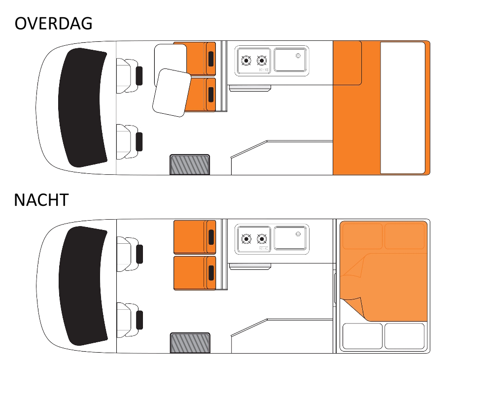 Prima camper voor een gezin met twee kinderen. Er zijn twee tweepersoonsbedden: het bed boven de bestuurderscabine is tot maximaal 200 kilo. De Voyager biedt voldoende ruimte en is praktisch ingericht. Er is geen airco in het woongedeelte. Er zijn twee baby- of kinderzitjes te plaatsen. Tweepersoonsbed (achter) van 1.76 bij 1.20m en een tweepersoonsbed (boven de bestuurderscabine) van 1.67 bij 1.19m. Binnenhoogte is 1.96m. De genoemde afmetingen kunnen in de praktijk enigszins afwijken.