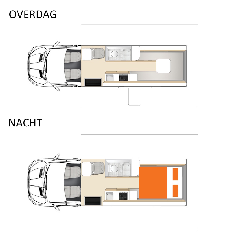 Ruime tweepersoonscamper, van alle gemakken voorzien. Inclusief douche, toilet, warm water, airco en verwarming. De camper heeft tevens een entertainment screen. Tweepersoonsbed van 1.90 bij 1.70m. Binnenhoogte is 1.90m. De genoemde afmetingen kunnen in de praktijk enigszins afwijken.