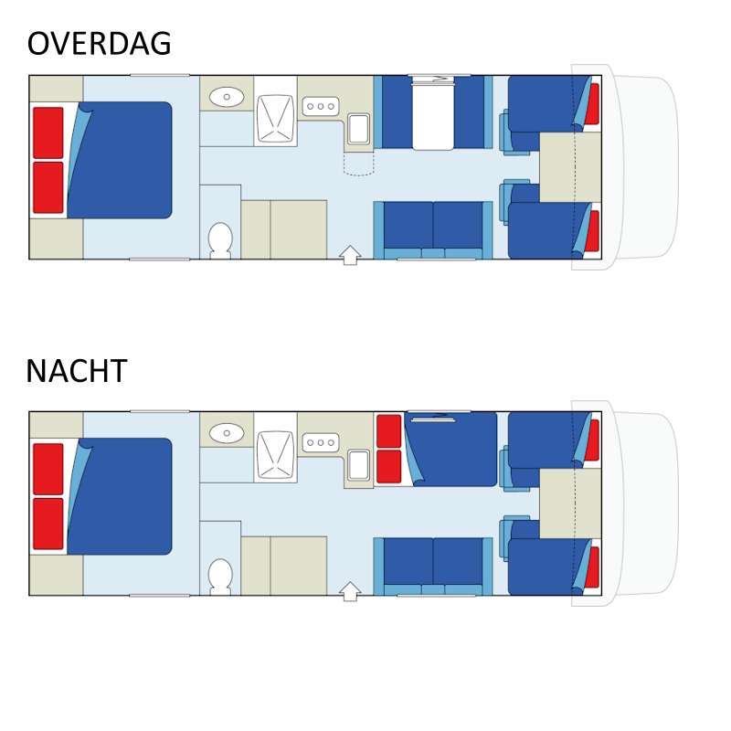 Deze ruime camper is geschikt voor 4 volwassenen en 2 kinderen en voorzien van achteruitrijcamera en 3-pits kookstel. Bedafmetingen: 188x152, 168x104 en twee bedden a 182x76 cm. Alle genoemde afmetingen kunnen in de praktijk enigszins afwijken. Deze camper is niet beschikbaar op het verhuurstation van Whitehorse.